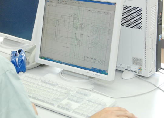 発注元から受け取った設計図をもとに、施工図面の作成を行います。また、現場技術者から重機等の段取り手配をしています。